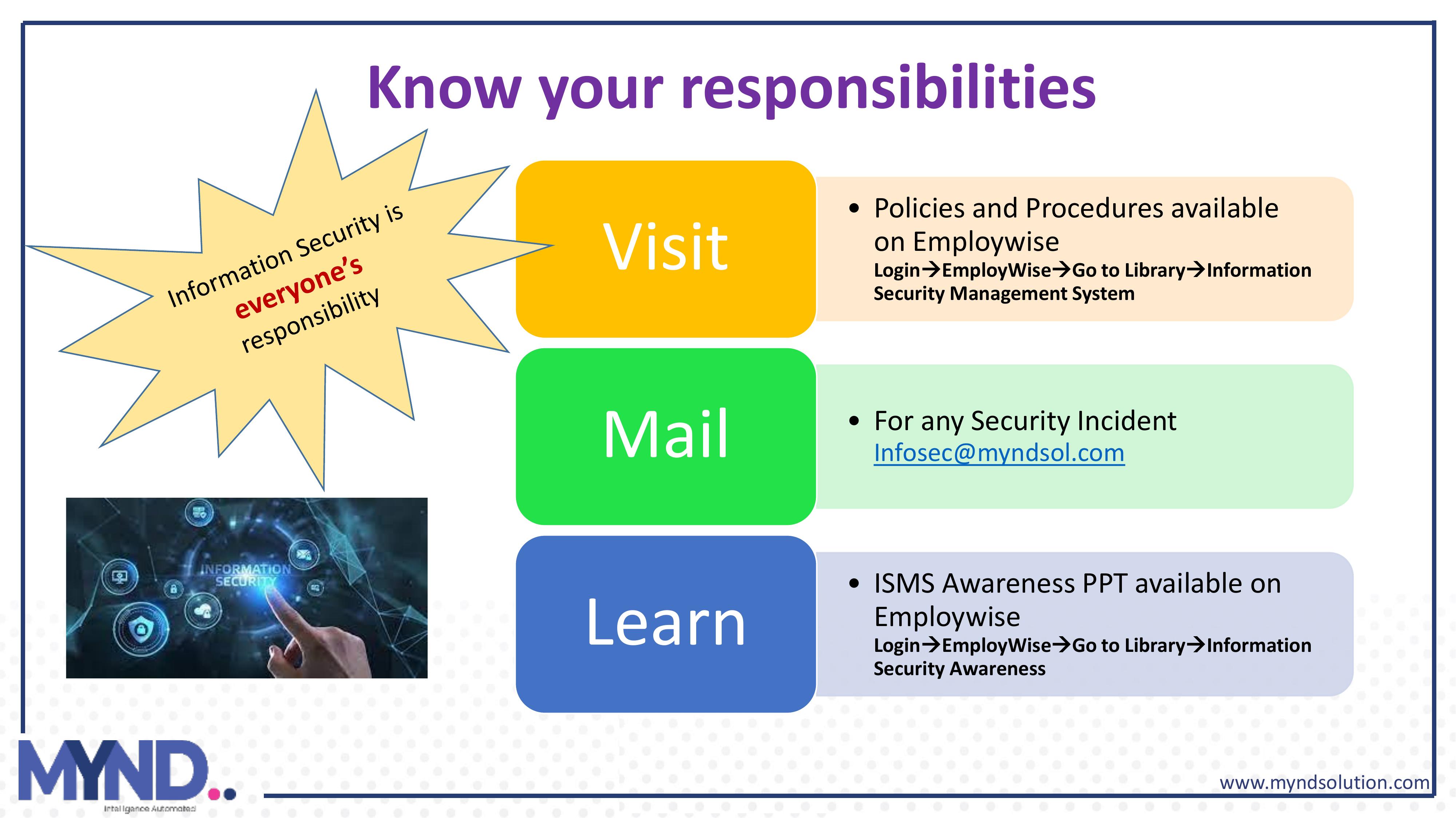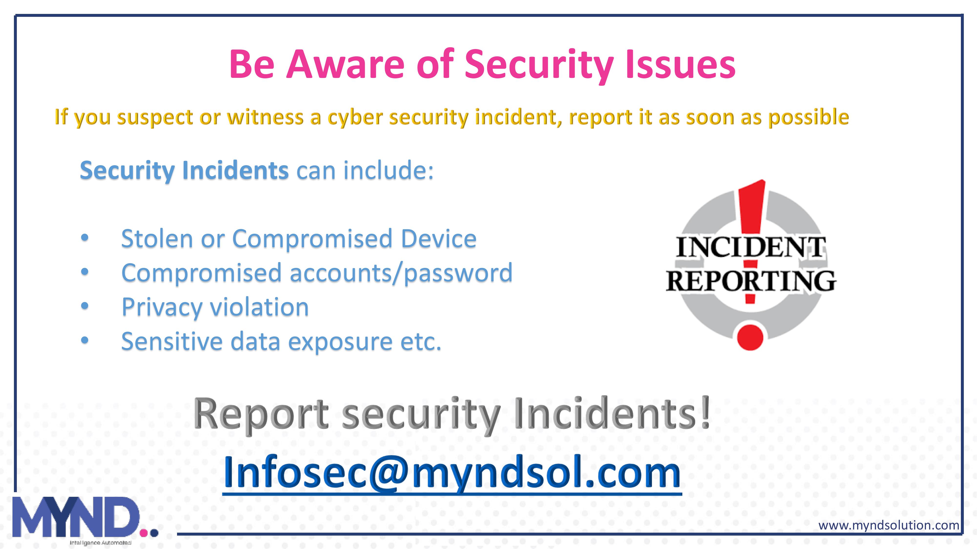 Information security awareness in the context of regular emails within an organization is essential for mitigating the risks associated with email-based threats, such as phishing attacks, malware, and unauthorized disclosure of sensitive information. Here are some emails which we have circulated within the organization.